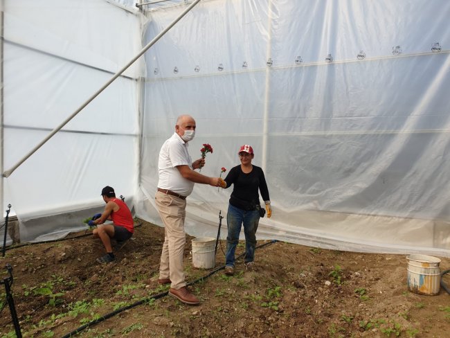 MZO Başkanı Rasim Metin ve Manavgat ilçe Tarım ve Orman Müdürü Ömür Ozan Çakal Dünya Kadın Çiftçiler Gününde, tarım arazilerinde ve seralarda çalışan kadınları ziyaret ederek, günlerini kutladı. Ziyarette başkan ve tarım ve orman müdür ömür ozan çakal , kadın çiftçilere çiçek takdim etti.