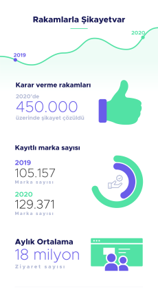 Şikayetvar verilerine göre geçen yıl 105 bin 157 olan sisteme kayıtlı marka sayısı bu yıl 120 bin markaya ulaştı. Ayda ortalama 18 milyon kişinin ziyaret ettiği Şikayetvar, 2020’de 450 binin üzerinde şikayeti çözüme kavuşturdu. 2019’da 1 milyon 974 bin 817 olan şikayet sayısı 2020’de yüzde 82 artarak 3 milyon 605 bin 92 oldu. 2019’da 951 bin 630 olan üye sayısıysa yüzde 80 artarak 1 milyon 713 bin 340’a yükseldi.
