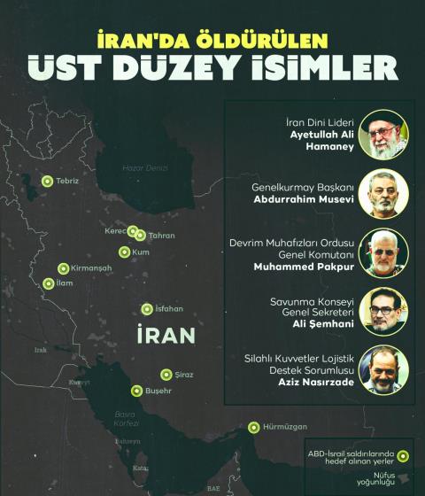 İran Silahlı Kuvvetleri dün yaptığı açıklamada ise Savunma Konseyi toplantısı sırasında düzenlenen saldırılarda; Genelkurmay Başkanı Abdurrahim Musevi, Devrim Muhafızları Ordusu Genel Komutanı Muhammed Pakpur, Savunma Konseyi Genel Sekreteri Ali Şemhani ve Silahlı Kuvvetler Lojistik Destek Sorumlusu Aziz Nasırzade’nin hayatını kaybettiğini bildirmişti.