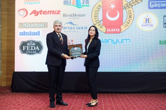 Konuşmaların ardından Gazeteci Ahmed Arpat’a ‘Yılın Gazetecisi Ödülü’ Alanya Kaymakam Vekili Gazipaşa Kaymakamı Selami Korkutata hediyesi ise Alanya Belediye Başkanı Osman Tarık Özçelik tarafından takdim edildi. Ödülünü alan Arpat hitabında “Haber peşinde koşmak, doğru düzgün yayıncılık bunlar gazeteciliğin mutlak şartlarından biri ama herhalde bu dönemde bu çizgiyi bozmamak da önemli bir meziyet” dedi.