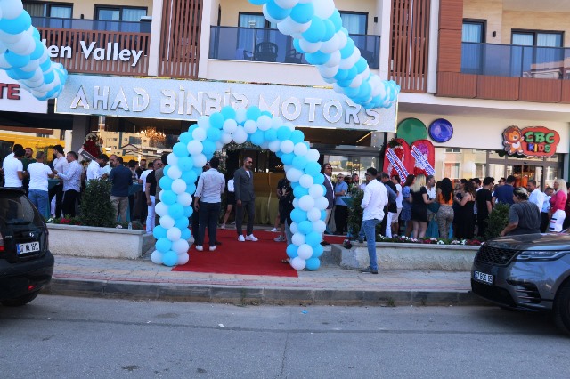 Alanya’da emlak ve gayrimenkul alanında faaliyet gösteren Ahad Holding’in bünyesinde kurulan lüks araç galerisi Ahad Binbir Motors törenle açıldı. Oba Mahallesi, Yüzbaşıoğlu Sokak’ta yer alan Ahad Binbir Motors’un açılışına Alanya Ticaret ve Sanayi Odası (ALTSO) Başkanı Eray Erdem, Alanya Doğu ve Güneydoğu Anadolu İşadamları Derneği Başkanı Seyithan Aladağ, çok sayıda iş insanı ve davetli katıldı.