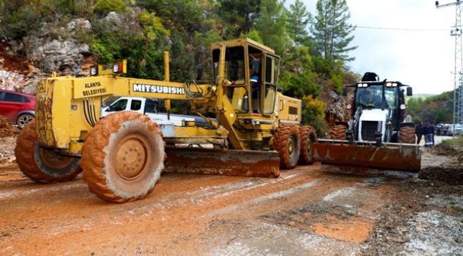 Alanya Belediyesi'nden yağmurda kapanan yollara jet müdahale