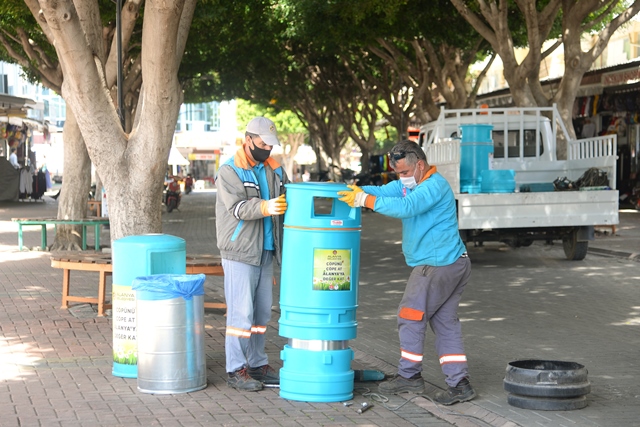 Alanya Belediyesi, tüm kadrolarıyla sezon hazırlıklarına devam ediyor. Çalışmalar kapsamında Alanya Belediyesi Temizlik İşleri Müdürlüğü’ne bağlı ekiplerce kent genelinde bulunan eskimiş veya kırılmış tepegözler tek tek tespit edilip yenileriyle değiştiriliyor. Eskiyen veya kırılan tepegözler ise tamir edilip boyanarak yeniden kullanıma sunuluyor.