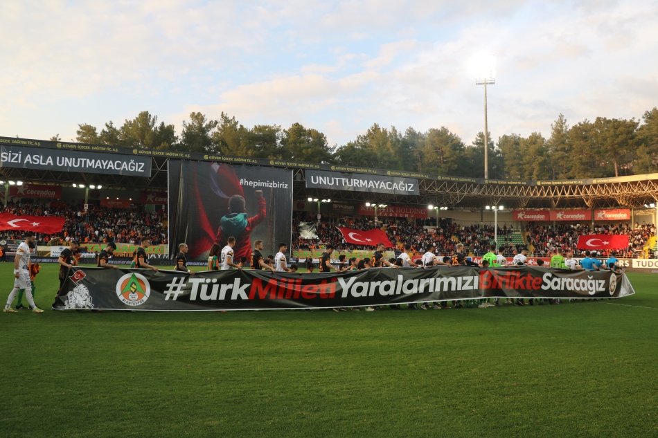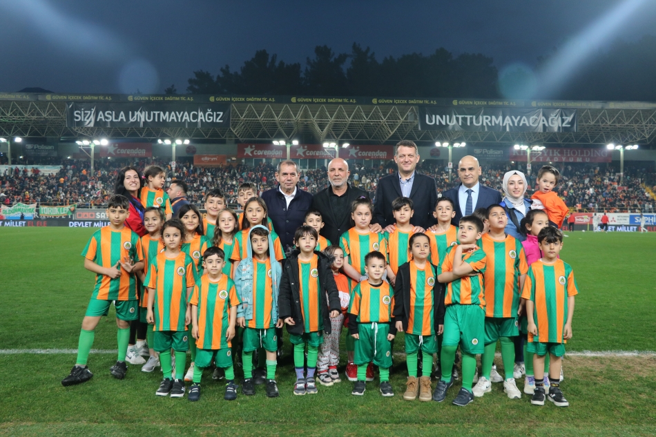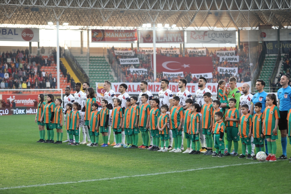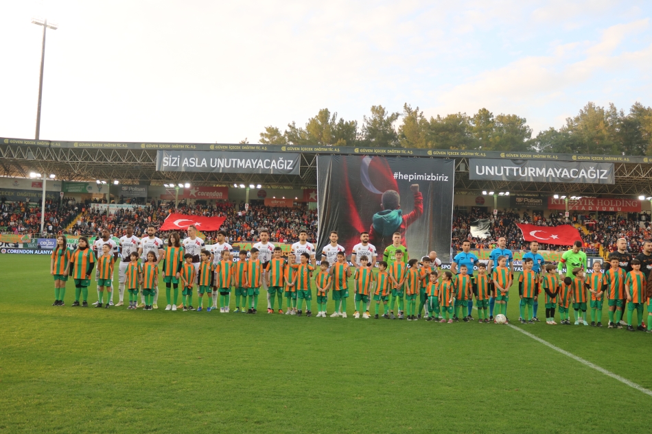 Corendon Alanyaspor, tüm gelirleri depremzede vatandaşlarımıza bağışlanacak hazırlık maçında Galatasaray ile karşılaştı. Turuncu yeşilli takım, Kırbıyık Holding Stadyumu’nda oynanan karşılaşmadan 4-2 mağlup ayrıldı. Corendon Alanyasporlu futbolcular maç öncesi ısınmaya, üzerinde ‘Geçmiş olsun Türkiyem’, ‘Türkiye tek yürek’ ve deprem felaketinden etkilenen illerimizin isimleri yazan siyah tişörtlerle çıktı. İki takım oyuncuları seremoniye ise ‘Türk milleti yaralarımızı birlikte saracağız’ yazılı pankartla çıktı. Seremonide depremzede çocuklar da yer aldı. Turuncu yeşilliler karşılaşmaya, deprem felaketinden etkilenen illerimizin isimleri yer alan özel tasarımlı formalarla çıktı. Karşılaşmanın devre arasında Alanyaspor Başkanı Hasan Çavuşoğlu, Galatasaray Başkanı Dursun Aydın Özbek, Alanya Kaymakamı Dr. Fatih Ürkmezer ve Gençlik ve Spor İlçe Müdürü Emre Kıldırgıcı, depremzede çocuklarla fotoğraf çektirdi. Turuncu yeşilli takımın maçtaki gollerini 17. dakikada Ivan Cavaleiro, 90+4. dakikada Wilson Eduardo kaydetti. Karşılaşma boyunca tribünlerde ise her iki takımın taraftarları arasında dostluk havası esti.