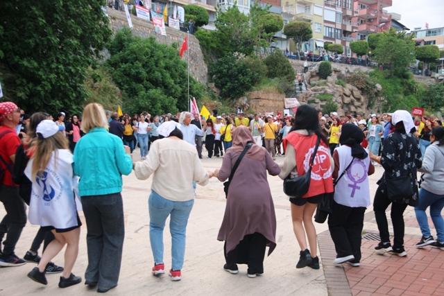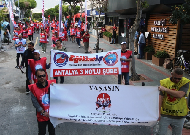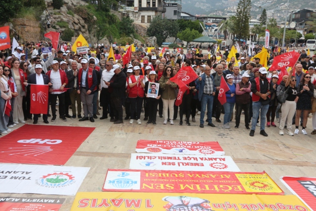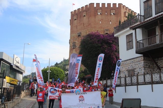 Alanya'da 1 Mayıs Emek ve Dayanışma Günü kutlandı. Kuyularönü Camii önünde toplanan kalabalık ardından marşlar ve sloganlar eşliğinde iskeledeki Şelale Meydanı'na kadar yürüdü. Kutlamalara ilçedeki siyasiler, sendikaların temsilcileri, üyeleri ve vatandaşlar katıldı. Polis tarafından üst araması yapılarak Şelale Meydanı'na alınan kalabalık tüm işçiler için 1 dakikalık saygı duruşunda bulundu. Kutlamada tertip komitesi adına konuşan Eğitim-İş 3 Nolu Şube Başkanı Hüseyin Zeybek ve Eğitim-Sen Şube Başkanı Hüseyin Erdem, “1 Mayıs, emekçilerin insanca yaşam, eşitlik, özgürlük ve barış talepleriyle alanları doldurduğu, dünyanın dört bir yanında mücadele ve dayanışmanın yükseltildiği tarihsel bir gündür. Türkiye’de milyonlarca emekçi artan hayat pahalılığı, derinleşen yoksulluk, işsizlik ve adaletsizlik kıskacında yaşam mücadelesi verirken, en temel sosyal haklar ticarileştirilmekte, güvencesiz çalışma biçimleri olağanlaştırılmaktadır.