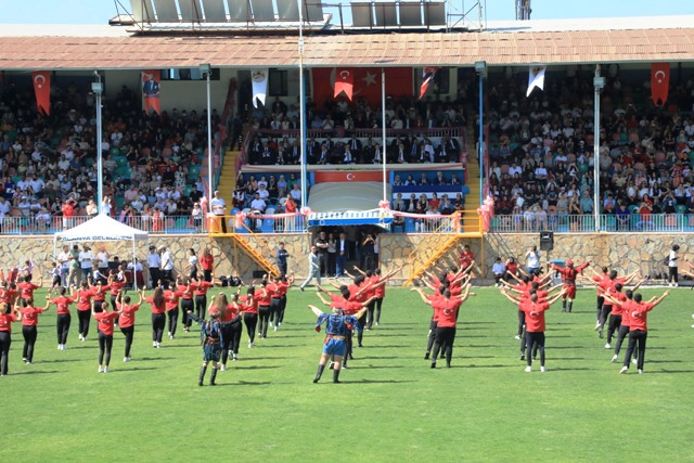 Saygı duruşu ve İstiklal Marşı'nın coşkuyla okunmasıyla başlayan programda, Kaymakam Ürkmezer, ALKÜ Spor Bilimleri Fakültesi öğrencileri tarafından takdim edilen şanlı Türk bayrağımızı gururla teslim aldı. Alanya Gençlik ve Spor İlçe Müdürü Nazif Emre Kıldıgıcı, günün anlam ve önemine binaen bir konuşma yaptı. Konuşmaların ardından gençler tarafından gösteriler düzenlendi. Arıkan Yılmaz Dim Mesleki ve Teknik Anadolu Lisesi öğrencilerinin sunduğu halk oyunları gösterisi büyük beğeni topladı. Gençler tarafından Atatürk'ün Gençliğe Hitabesi coşku ile okundu. Devamında Hasan Çolak Anadolu Lisesi öğrencileri şiirler seslendirdi. Programda milli şuur ve bilinçle tüm gençlerimiz hep bir ağızdan Türk Gençliği'nin Atatürk'e Cevabı’nı okudular. Gösteriler ALKÜ Spor Bilimleri Fakültesi öğrencilerinin sunduğu zeybek gösterisi, stad jmnastik sporcularının jimnastik gösterisi, Özel Yaşam Tasarım Okulu öğrencilerinin hazırladığı 19 Mayıs temalı gösteri, Alanya Gençlik ve Spor İlçe Müdürlüğü sporcularının taekwondo gösterisi ve ALKÜ Spor Bilimleri Fakültesi öğrencilerinin step aerobik gösterileri ile devam etti.