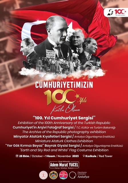 ALANYA'DA CUMHURİYET'İN 100. YIL KUTLAMALARI BAŞLADI "100. YIL CUMHURİYET SERGİSİ" 25 EKİM'DE KIZILKULE'DE