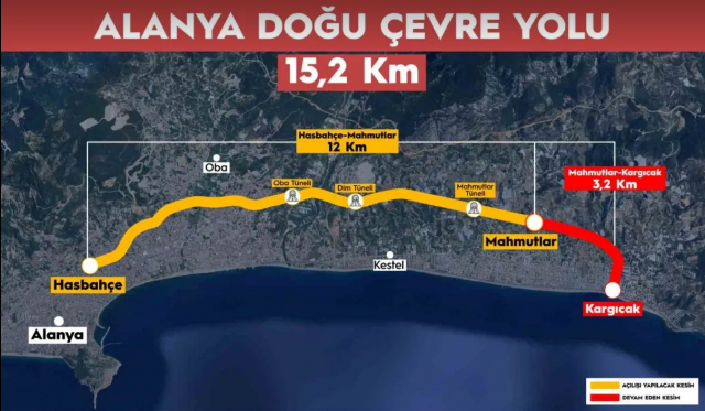 Çevre Yolu’nu Hasbahçe- Kargıcak arasında toplam 15,2 kilometre uzunluğunda, bitümlü sıcak karışım kaplamalı bölünmüş yol standardında projelendirdiklerini belirten Uraloğlu, “Bugün yolumuzun Hasbahçe-Mahmutlar arasındaki 12 kilometrelik kesimini hizmete açmanın gururunu yaşıyoruz. Açılışını gerçekleştirdiğimiz bu 12 kilometrelik kesimin ilk 4,5 kilometresini 3 gidiş 3 geliş 6 şeritli, devamındaki 7,5 kilometresini ise 2 gidiş ve 2 geliş 4 şeritli olarak inşa ettik.” şeklinde konuştu.