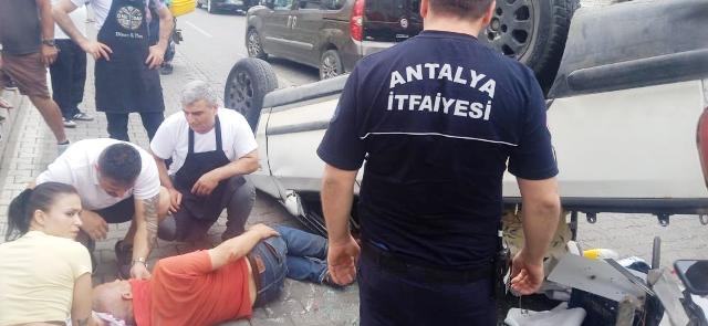 Alanya'da kamyonet önce otomobile çarptı, ardından takla attı: 1 yaralı