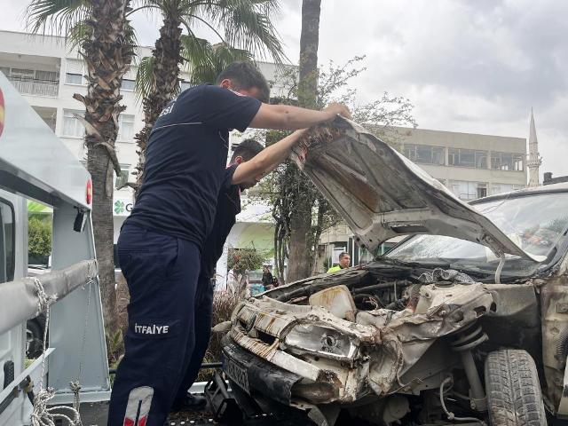 Alanya’da meydana gelen trafik kazasında, kontrolden çıkan kamyonet önce bir otomobile çarptı, ardından palmiye ağacına çarparak takla attı. Kazada kamyonet sürücüsü yaralandı.