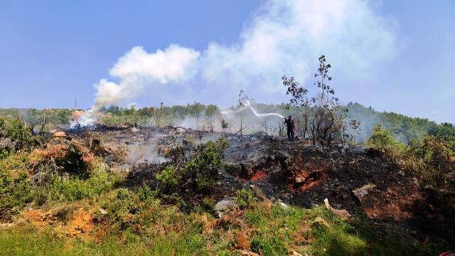 Alanya'da makilik alandaki yangın ormana sıçramadan söndürüldü