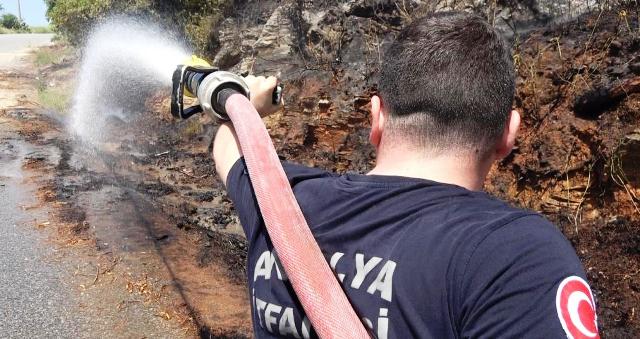 Alanya’da makilik alanda çıkan yangın ormanlık alana sıçramadan söndürüldü.