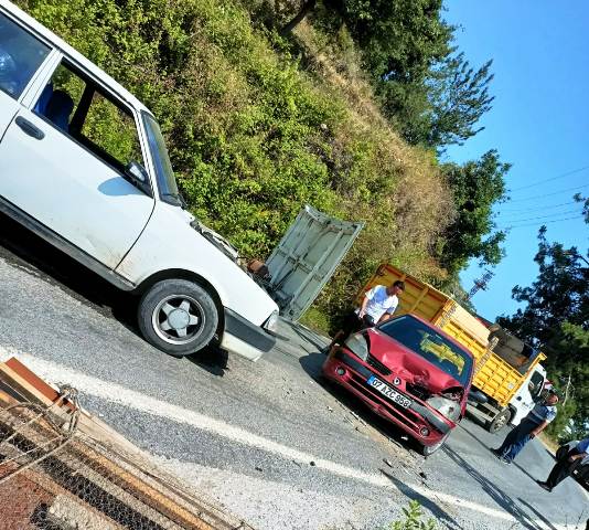 Alanya’da 2 otomobilin kafa kafaya çarpışması sonucu maddi hasarlı kaza meydana geldi.