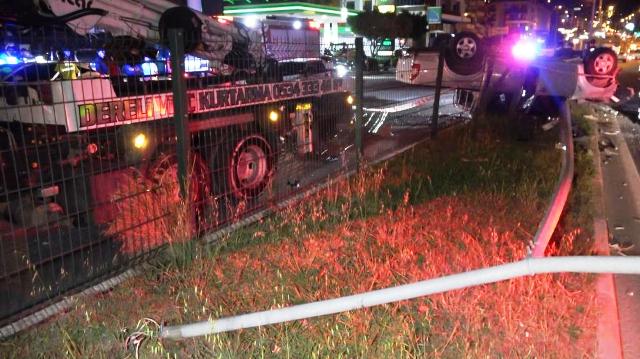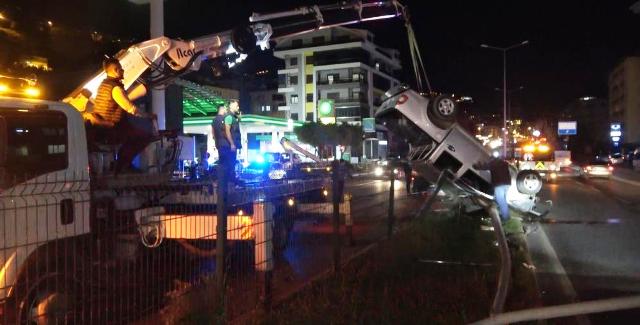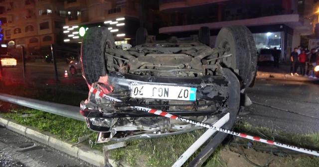 Kaza, gece saatlerinde Alanya D-400 Karayolu üzerinde meydana geldi. Edinilen bilgilere göre, Mersin'den Antalya yönüne seyreden F.N.'nin (32) kullandığı 07 NGJ 70 plakalı otomobil, kontrolden çıkarak önce yol kenarındaki bariyerlere sonra da orta refüjdeki aydınlatma direğine çarptı. Çarpmanın etkisiyle savrulan otomobil takla atarak durabildi. Kazada sürücü ile araçtaki Ç.D. (42) yaralandılar. Çevredekilerin ihbarı üzerine olay yerine ambulans, polis ve itfaiye ekipleri sevk edildi. Yaralılar, sağlık ekiplerinin olay yerindeki ilk müdahalesinin ardından ambulansla Alanya Eğitim ve Araştırma Hastanesi'ne kaldırıldı. Kazada otomobil sürücüsünün 1.85 promil alkollü olduğu öğrenildi. Kazada hurdaya dönen araç çekici yardımıyla kaldırılırken kazayla ilgili inceleme başlatıldı. – İHA