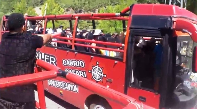Alanya İlçe Jandarma Komutanlığı trafik ekipleri tarafından Sapadere Kanyon yolunda yapılan kontrollerde, 07 HNK 61 plakalı araç ve sürücüsü A.Y. durduruldu. Yapılan sorgulamada, sürücünün 2 Temmuz’da basına da yansıyan görüntülerde, 07 BBR 883 plakalı araçtan direksiyonu terk ederek yan taraftaki safari aracındaki turistlere kova ile su attığı ve bu nedenle trafik kazasına sebebiyet veren aynı kişi olduğu belirlendi. 10 Ekim’de sürücü belgesi geri alındığı halde araç kullanıp yolcu taşıdığı tespit edilen safari sürücüsüne 2918 sayılı Karayolları Trafik Kanunu'nun 36/3-b (Sürücü Belgesi Geri Alındığı halde araç kullanmak) maddesi gereğince 12 bin 977 TL cezai işlem uygulandı. Sürücünün sevk ve idaresindeki 07 HNK 61 plakalı safari aracının sahibi Süvariler Turizm firması hakkında da ehliyetsiz araç kullanımına izin vermekten 12 bin 977 TL cezai işlem uygulandı. Ayrıca Süvariler Turizm seyahat firmasının Turizm Amaçlı Sportif Faaliyet izin belgesinin olmadığı tespit edilerek ilgili firmaya 64 bin 344 TL idari para cezası uygulanarak safari faaliyetinden men edildi. - Alanya Kaymakamlığı / Bülten