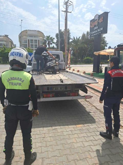 Alanya’da motosiklet üzerinde yolcuyu kucağına alarak seyir halinde ilerleyen sürücüye jandarma ekipleri tarafından 32 bin 887 TL idari para cezası uygulandı. Tehlikeli yolculuk cep telefonu kamerasıyla görüntülenirken, motosiklet trafikten men edildi.