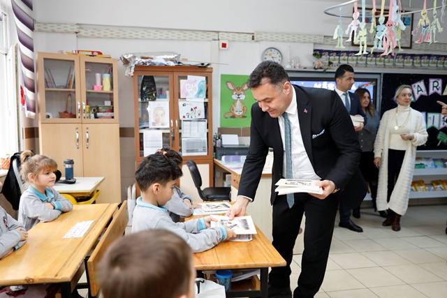 Alanya Belediye Başkanı Adem Murat Yücel, 2023-2024 eğitim öğretim yılının ilk yarısının sona ermesiyle birlikte çocukların karne heyecanına ortak oldu. Başkan Yücel, minik öğrencilere okuma kitabı hediye etti.