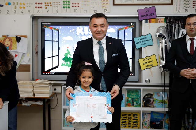 2023-2024 Eğitim Öğretim yılının ilk yarısı, bugün düzenlenen karne töreni ile sona erdi. Alanya Belediye Başkanı Adem Murat Yücel ve Alanya Kaymakamı Fatih Ürkmezer, Cikcilli Mehmet Emine Öncü İlkokulunda çocuklara karne dağıttı. Öğrencilerle sohbet edip karnelerini takdim eden Başkan Yücel, eğitim-öğretime her daim destek olan Alanya Belediyesi’nin çocukların gelişimi ve öğrenimine katkı sağlamak amacıyla hazırlattığı okuma kitaplarından da hediye etti.