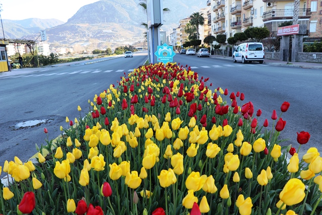 ALANYA SOKAKLARINDA İLKBAHAR MÜJDECİSİ LALELER ÇİÇEK AÇTI