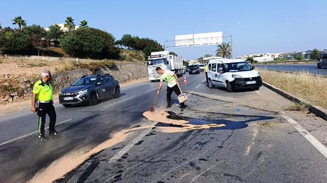 Diğer taraftan, kaza ve kaza yapan araçlardan yola dökülen yağlar nedeniyle D-400 Karayolu’nda trafik akışı uzun süre tek şeritten kontrollü olarak sağlanırken, Manavgat Belediyesi Temizlik İşleri Müdürlüğü ekiplerinin yolu temizlemeleri ve kumlama yapmalarının ardından trafik akışı normale döndü. – İHA