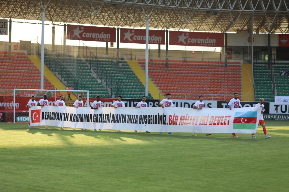 Öte yandan karşılaşma öncesinde Alanyaspor'un davetlisi olarak maça gelen Azerbaycan ordusu gazilerine Alanyaspor Kulüp Başkanı Hasan Çavuşoğlu tarafından plaket ve çiçek takdim edildi.