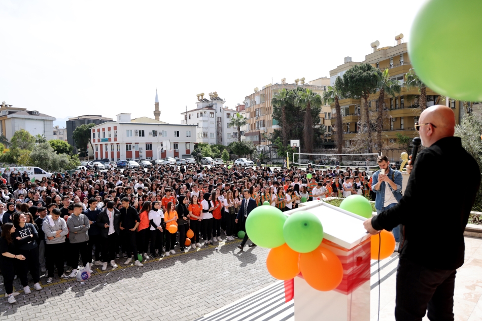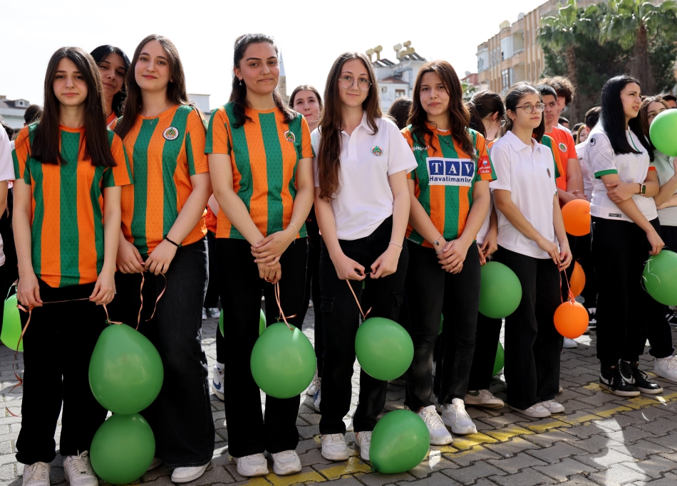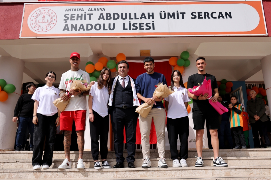 ‘Alanyasporum Okulumda’ projesi kapsamında Corendon Alanyaspor Kulübü Başkanı Hasan Çavuşoğlu, Kulüp Genel Koordinatörü Mevlüthan Çavuşoğlu, futbolcular Furkan Bayır, Richard Coelho ve Nuno Lima Şehit Abdullah Ümit Sercan Anadolu Lisesi öğrencileriyle buluştu.