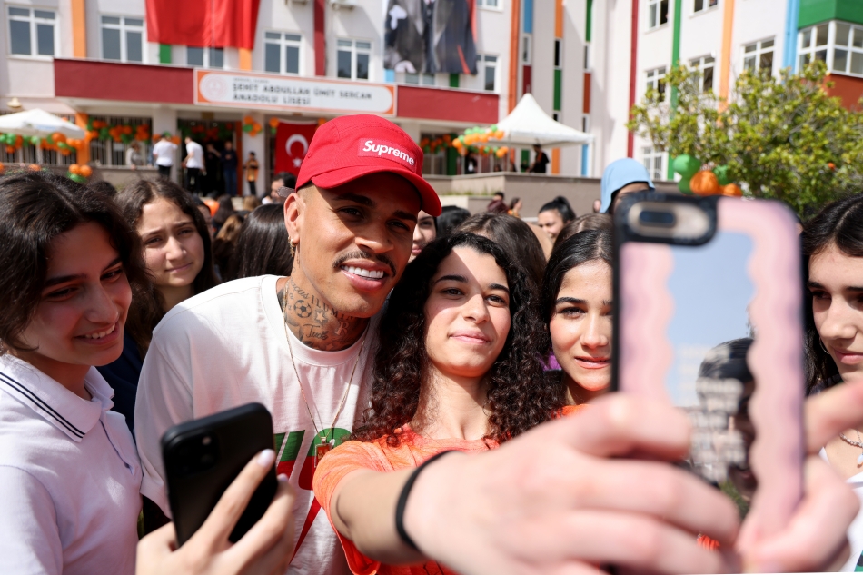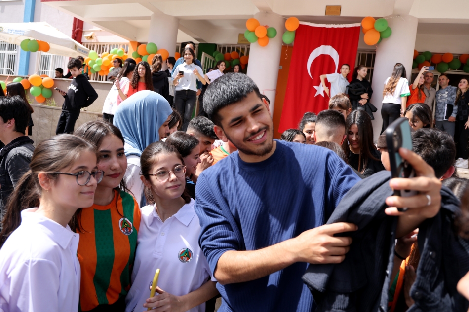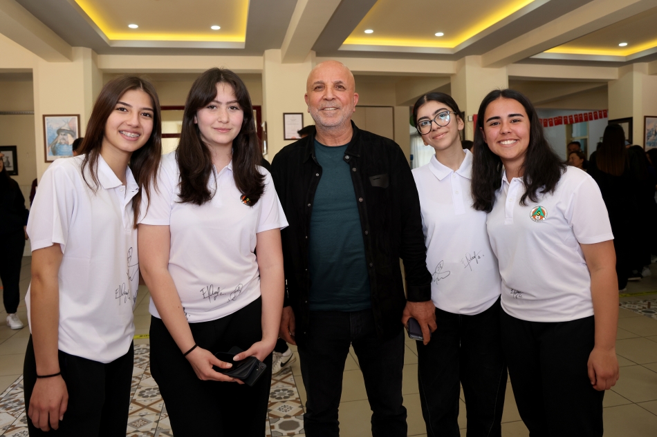 Şehit Abdullah Ümit Sercan Anadolu Lisesi öğrencileri, Başkan Hasan Çavuşoğlu’nu ve futbolcuları coşkuyla karşılayarak yoğun ilgi gösterdi.