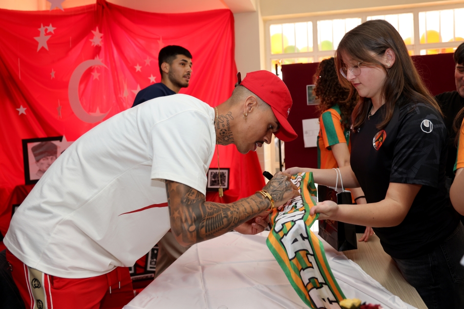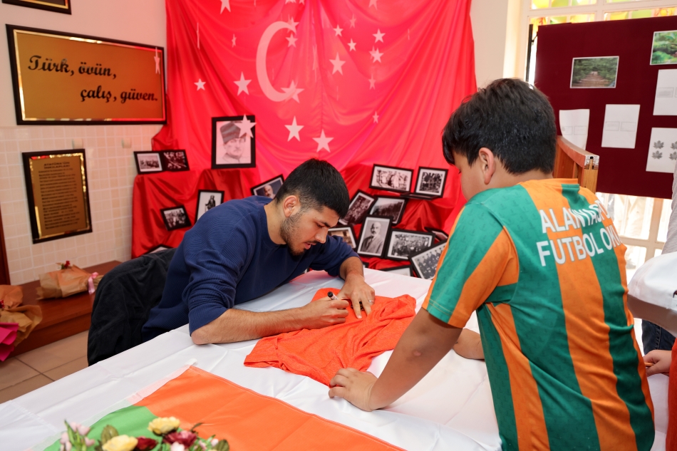 Konuşmaların ardından Kulüp Başkanı Hasan Çavuşoğlu, Şehit Abdullah Ümit Sercan Anadolu Lisesi İbrahim Sevimlier’e forma takdim etti. Alanya İlçe Milli Eğitim Müdürü Yusuf Yılmaz ile öğrenciler de Başkan Hasan Çavuşoğlu ve futbolculara çiçek verdi. Turuncu yişilli futbolcular, öğrencilerin forma, atkı ve diğer ürünlerini imzalayarak fotoğraf çektirdiler.