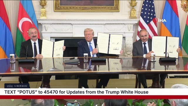 Azerbaycan Cumhurbaşkanı İlham Aliyev ile Ermenistan Başbakanı Paşinyan, ABD Başkanı Donald Trump'ın ev sahipliğinde Beyaz Saray'da ortak deklarasyona imza attı.