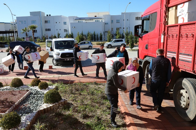 Alanya Alaaddin Keykubat Üniversitesinde (ALKÜ) toplanan yardım malzemeleri yola çıktı.