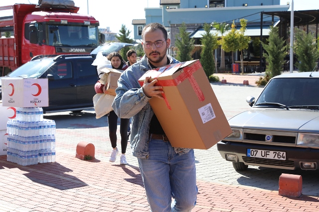 Alanya Alaaddin Keykubat Üniversitesi (ALKÜ) yaşanan deprem felaketi sonrasında toplanan yardım malzemelerini deprem bölgesine ulaştırılmak üzere yola çıktı. ALKÜ idari ve akademik personelinin depremzedelerin acılarını bir nebze olsun hafifletmek amacıyla teslim ettikleri çocuk pusedinden, mont, ayakkabı, battaniye, kadın/bebek hijyen malzemeleri, çocuk maması, yastık ve yorgana kadar, bulaşık deterjanından kilim, kazma/kürek, eldiven, döşek, el feneri, giysi ve kazaklara kadar 123 çeşit bir tır dolusu malzeme depremzedelere ulaştırılmak üzere hareket etti.