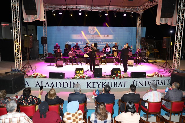 Alanya Alaaddin Keykubat Üniversitesi (ALKÜ) 14. Dünya Dili Türkçe Sempozyumu ikinci günü bilim oturumları sona erdi. Bilim oturumlarının sona ermesinin ardından ALKÜ Eğitim Fakültesi Müzik Eğitimi Ana Bilim Dalı ile Akdeniz Üniversitesi Güzel Sanatlar Fakültesi Müzik Bölümü öğretim üyeleri tarafından Türk Halk Müziği konseri düzenlendi. Konserde, öğretim üyeleri birbirinden güzel parçaları seslendirerek sempozyumun katılımcılarına unutulmaz bir gece yaşattı. ALKÜ Rektörü Prof. Dr. Ekrem Kalan, 14. Dünya Dili Türkçe Sempozyumu kapsamında düzenlenen Türk Halk Müziği konseriyle katılımcıların güzel bir akşam yaşamasından dolayı mutlu olduğunu söyledi.