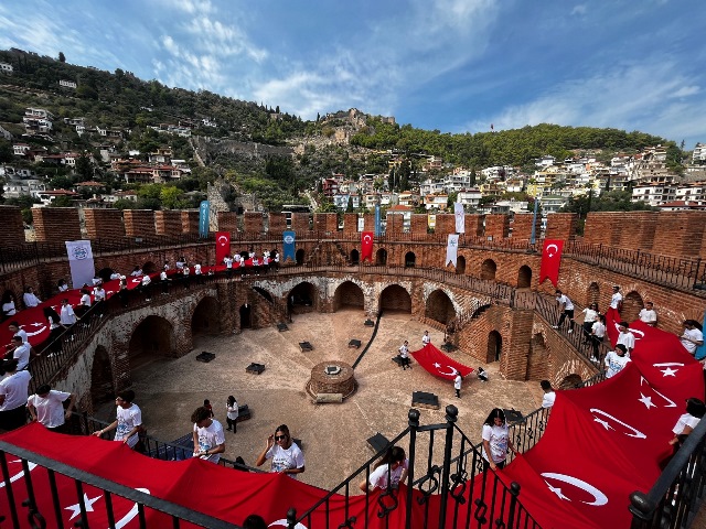 Alanya Alaaddin Keykubat Üniversitesi (ALKÜ) öğrencileri tarafından 58. Cumhurbaşkanlığı Türkiye Bisiklet Turu başlangıcında Kızıl Kule’de yapılan Türk bayrağı şöleni damga vurdu.