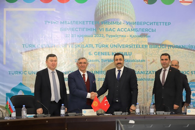 Alanya Alaaddin Keykubat Üniversitesi (ALKÜ), uluslararası iş birliklerine yenilerini eklemeye devam ediyor. Türk Devletleri Teşkilatı Türk Üniversiteler Birliği'nin 6. Genel Kurulu dolayısıyla Türkistan’da bulunan ALKÜ Rektörü Prof. Dr. Ekrem Kalan ile Kırgızistan-Türkiye Manas Üniversitesi Rektörü Prof. Dr. Alpaslan Ceylan arasında Memorandum of Understanding (MoU) anlaşması da imzaladı. Yapılan anlaşma ALKÜ ile Kırgızistan-Türkiye Manas Üniversitesinde ortak derslerinin açılması, öğrenci ve öğretim üyeleri arasında değişim, ortak proje ve araştırmaların yapılması, seminer- çalıştay düzenlenmesi, ortak yayın yapılması, spor sanat ve kültürel etkinlerin gerçekleşmesi gibi birçok konuyu kapsıyor.