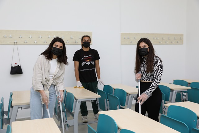 Etkinlik tüm öğleden sonra öğrencilerin katlardaki derslikleri ve amfileri temizlemesiyle devam etti.