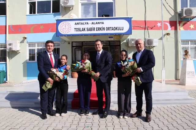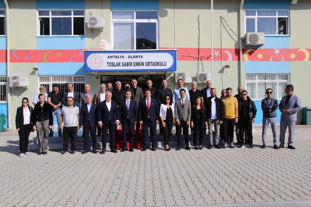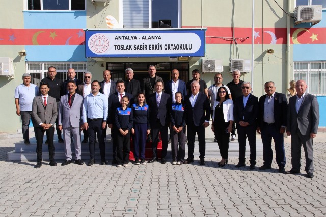 Alanya Kaymakamı Şakir Öner Öztürk, Alanya Ticaret ve Sanayi Odası (ALTSO) Başkanı Eray Erdem, İlçe Millî Eğitim Müdürü Yusuf Yılmaz, ALTSO Meclis Başkanı Mehmet Kural ve ALTSO Yönetim Kurulu Üyeleri, Toslak İlkokulu ve Toslak Sabir Erkin Ortaokulu’nu ziyaret ederek öğrencilere eşofman ve spor malzemesi dağıtımı gerçekleştirdi.