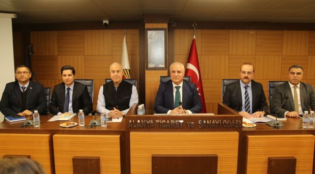 ALTSO Aylık Olağan Meclis Toplantısı gerçekleştirildi. Toplantın konukları Alanya Belediye Başkanı Osman Tarık Özçelik, Antalya Büyük Şehir Şube Müdürü Gazi Öten, İtfaiye Müdürümü Hasan Çelik, İmar ve Şehircilik Müdürü Hüseyin Uysal, Zabıta Müdürü Naci Uzunsakal ve ASAT Müdür Yardımcısı Mustafa Akdem katıldı.
