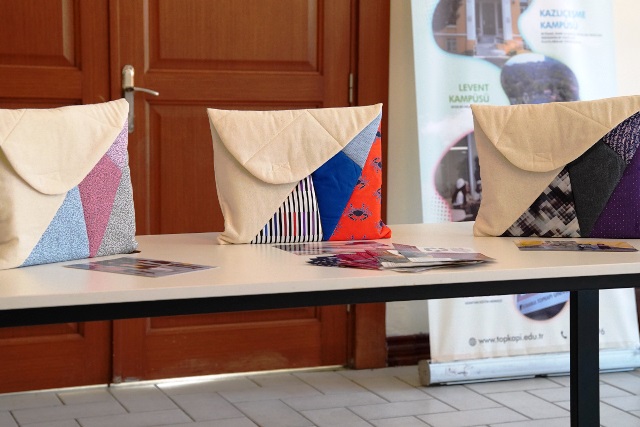 Sürdürebilir çevre için atık ve geri dönüşüm sorununa dikkat çekmek isteyen öğrenciler atık kumaşları kullanarak notebook çantaları ürettiler. Proje çerçevesinde üretilen çantalar düzenlenen sergi ile ziyaretçilerle buluştu.