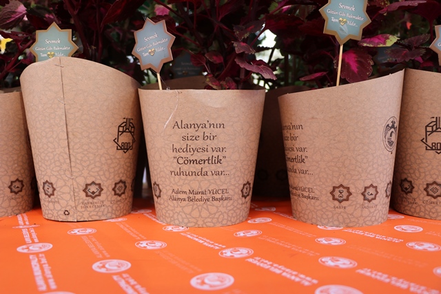 Başkan Yardımcısı Yenialp, “800. fetih yılını kutlayacağımız Alanya’da tarihe geçmiş aşklar, düğünler yaşanmış. Alanya’nın fethinin mimarı Sultan Alaaddin Keykubat Alanya’da Mahperi Sultan ile evlenmiştir. Biz de Alanya Belediyesi olarak, insan ilişkilerine ve sosyal aktivitelere verdiğimiz önemle bu yıl da Alanya Belediyesi Park ve Bahçeler Müdürlüğümüz tarafından özenle yetiştirilmiş çiçeklerimizi vatandaşlarımıza hediye ettik” diye konuştu.