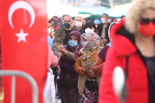 Alanya Belediyesi Park ve Bahçeler Müdürlüğü serasında yetiştirilen 3 bin fidan, Alanya'nın fethinin 800. yılı temasıyla 14 Şubat Sevgililer Günü öncesi Cuma Pazarı ve Mahmutlar Halk Pazarı’nda vatandaşlara dağıtıldı.