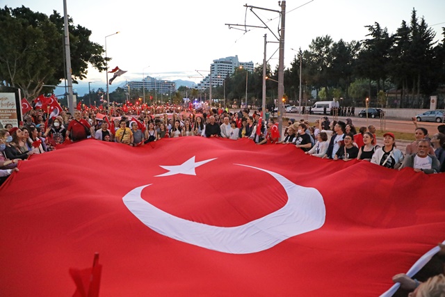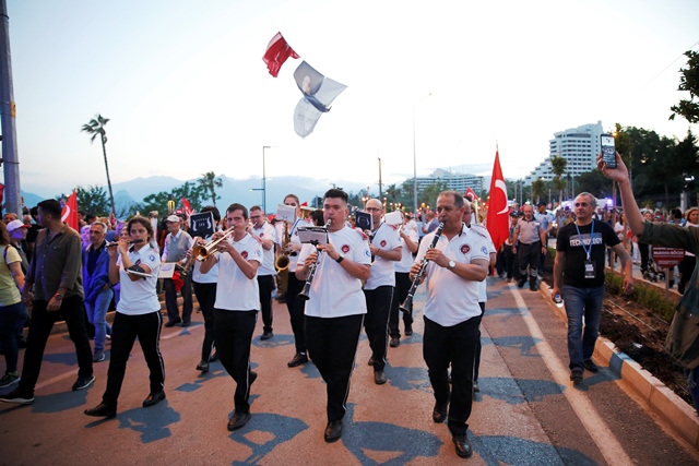 19 Mayıs kutlamaları akşamda binlerce Antalyalının katıldığı fener alayı coşkusu ile devam etti. Antalya Büyükşehir Belediyesi ve Cumhuriyet için Antalya El Ele Platformu tarafından, düzenlenen fener alayı Konyaaltı Varyant’tan başlayıp Cumhuriyet Meydanı’nda son buldu. Fener alayına katılan on binlerce Antalyalı 400 metrelik dev Türk bayrağı ve Atatürk posteri taşıyarak meşaleler eşliğinde yürüdü. Fener alayına Antalya Büyükşehir Belediye Başkan Vekili Büşra Dirgen Özdemir, CHP Antalya Milletvekilleri Rafet Zeybek, Cavit Arı, Aydın Özer, CHP İl Başkanı Nuri Cengiz, İYİ Parti İl Başkanı Mehmet Başaran, Cumhuriyet İçin Antalya Elele Platformu sözcüsü İbrahim Daş, STK’lar ve çok sayıda vatandaş katıldı.