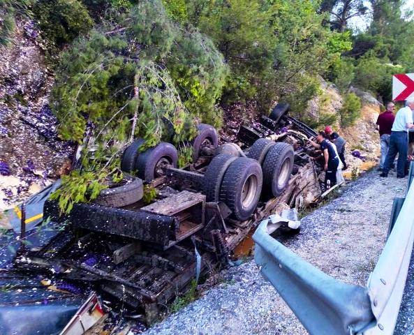Kaza, dün saat 20.00 sıralarında Akseki-Manavgat Karayolu, Manayıt Mevkii’nde meydana geldi. Edinilen bilgiye göre Osman Öztürk (60) idaresindeki 07 LEG 98 plakalı yumurta yüklü kamyon Manayıt mevkiinde virajı alamayıp yolun kenarındaki kayalık ve taşlık alana doğru savrulup ters döndü. Kazayı gören vatandaşların ihbarı üzerine kaza yerine ambulans, Büyükşehir Belediyesi itfaiye ekibi, Akseki Bölge Trafik ve Taşlıca Jandarma Karakolu'ndan ekipler yönlendirildi. Kaza yerine gelen ekipler sürücüye saatlerce ulaşamadı. Kamyonun altında kalan sürücü, olay yerine gelen vincin kamyonu kaldırmasıyla çıkartılabildi. Sağlık ekipleri tarafından müdahale edilen sürücünün hayatını kaybettiği belirlendi. Cumhuriyet savcısının kaza yerinde yaptığı incelemenin ardından ise hayatını kaybeden sürücü Akseki Devlet Hastanesi Morgu’na kaldırıldı. – İHA