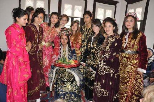 Kına Gecesi Manileri: Altın tas içinde kına kesilsin Görümceler etrafına dizilsin Gelinim kınan kutlu olsun Bundan dirliğin tatlı olsun. Dağdan keserler ıslığı Hani bu kızın yastığı Gelinim kınan kutlu olsun Bundan dirliğin al olsun. Dağdan keserler gürgeni Önünde mumlar yanası Gel gelinin kaynanası Gelinim kınan kutlu olsun Kızım bu bahçeler senin mi? İçinde gezen yârin mi? Yarın ayrılık günün mü? Gelinim kınan bol olsun Binen atın alçısına Düşer yolun koncasına Selam edin amcasına Ah kızım kınan kutlu olsun Geline bakın geline Kınalar yakın eline Mendiller sokun beline Sürmeler çekin gözüne Kız anasının kadını Ağlama kızım ağlama Beni yolda eğleme Biner atın iyisine Düşer yolun kuyusuna Selam edin dayısına Ah kızım kınan kutlu olsun Annesi kızın annesi Elinde mumlar yanası Yakınıyor gelinin kınası İşte budur bunun edası Atladı gitti eşiği Sofrada kaldı kaşığı Gidiyor da evlerin yakışığı A canım da kız gelin oluyor Annesi kızsız kalıyor Komşular ıssız kalıyor Elimi koydum taslara Kolumu kesti testere Mevla’m şirin göstere A canım da kız gelin oluyor Annesi kızsız kalıyor Testisi susuz kalıyor Geline bak geline Kınalar yakmış eline Yarın sabah gider kendi evine A canım da kız gelin oluyor Annesi kızsız kalıyor Komşular ıssız kalıyor."