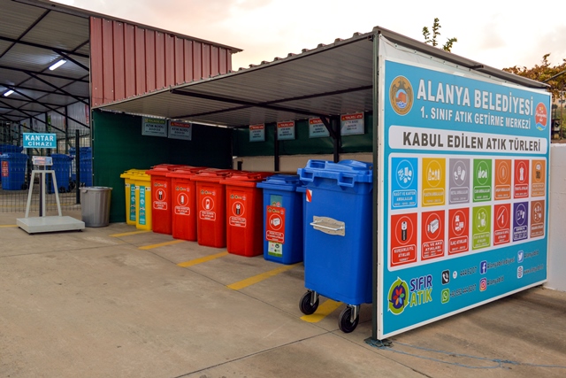 Alanya Belediyesi’nin “Sıfır Atık” kapsamında yatırımları ve çalışmaları devam ediyor. Temizlik İşleri Müdürlüğü şantiyesinde kurulan 1. Sınıf Atık Getirme Merkezi ile hem atık ürünlerde tasarruf sağlanacak hem de doğa korunacak.