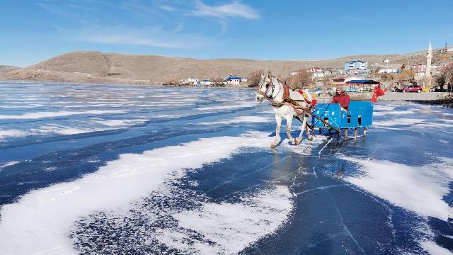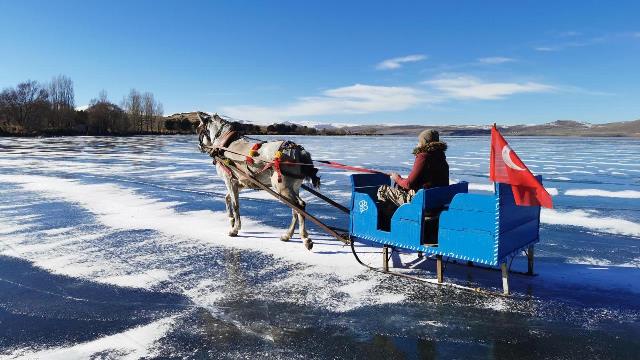 Kış turizminin önemli alanlarından, karlı günlerde yüzeyinin donup buz kalınlığının yeterli miktara ulaşmasıyla atlı kızakların hizmet verdiği gölde, yerli ve yabancı turistler keyifli anlar yaşıyor.