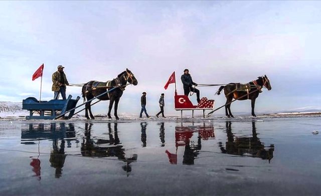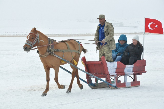 İlk olarak buz tutan göl üzerine yürüyüş yapmanın keyfi paha biçilemiyor. Uzun bir alanda bu keyfi tatmak isteyenler, süslenen Türk bayrakları ve atlı kızaklarla da fotoğraf çekerek anı ölümsüzleştirebiliyor.