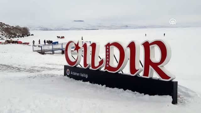 Kars ile Ardahan sınırında bulunan ve yüzeyinin bir bölümü buzla kaplanan Çıldır Gölü, yerli ve yabancı turistleri ağırlıyor.