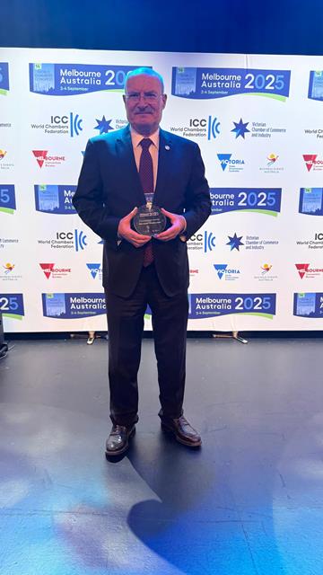ATO Başkanı Gürsel Baran, Avustralya’nın Melbourne kentinde, 14. Dünya Odalar Kongresi kapsamında gerçekleştirilen "2025 Dünya Odalar Yarışması"nın final programı ve sonuçlarının açıklandığı kongre gala gecesine ATO Yönetim Kurulu Başkan Yardımcısı Temel Aktay, Yönetim Kurulu Üyesi Adem Ali Yılmaz, ATO Bilişim Teknolojileri Meslek Komitesi Başkanı Gökhan Ertek ve proje geliştirme ekibinde görevli ATO personeli ile birlikte katıldı.