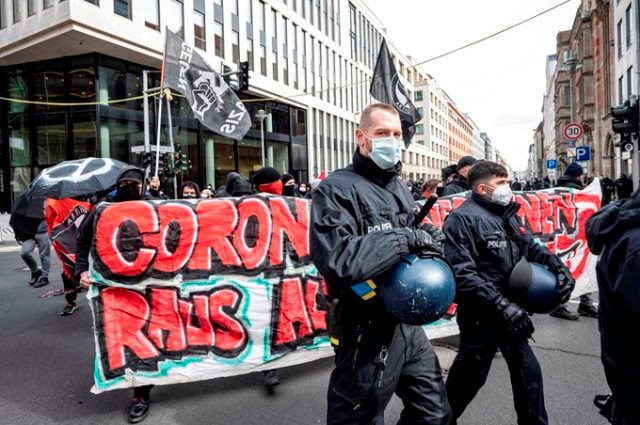 Başkent Berlin’de de aşırı sağcılar Kovid-19 tedbirlerini protesto etti. Kent merkezindeki Brandenburg Kapısı'nın önünde toplanan 200 kişi yoğun güvenlik önlemlerinin alandan Federal Meclise doğru yürüyüşe geçti. Polis, maske ve mesafe kurallarına uyulmadığı gerekçesiyle eylemi sonlandırdı.