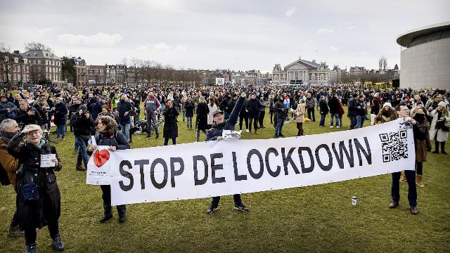 Amsterdam kentindeki müzeler meydanında toplanan göstericiler, başta sokağa çıkma kısıtlaması olmak üzere, kısıtlamaların bir an önce sona ermesini istedi.